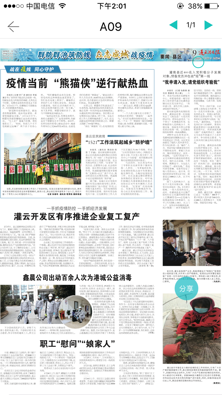 2020年2月20日,鑫晨公司出動(dòng)百余人次為港城公益消毒。